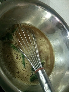 2. Add the eggs, gula melaka and caster sugar and whisk to combine.